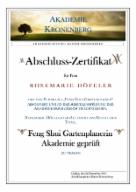 "Feng Shui Gartenplaner/in" - Akdemie geprüft. Die Anmeldung zur Teilnahme an der Abschlussprüfung kann jederzeit während, und bis 1 Jahr nach erfolgreichem Abschluss des Fernkurses erfolgen.